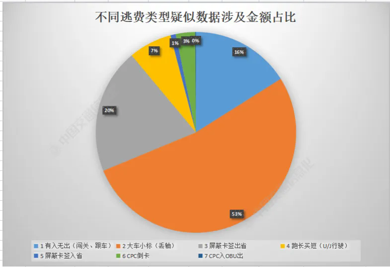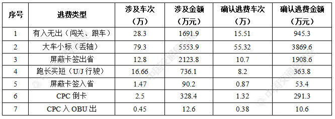 分析可得,有入無出(闖關(guān)、跟車)、大車小標(丟軸)、屏蔽卡簽出省和跑長買短(U/J行駛)等4種逃費類型分別占據(jù)涉及行程數(shù)的96.87%、疑似損失金額的95.9%,是稽核系統(tǒng)需加大核查力度的逃費類型,特別是屏蔽卡簽逃費車次占為11%,逃費金額占比卻達25%,以全網(wǎng)聯(lián)網(wǎng)收費運行模式下出現(xiàn)的新型逃費類型,需要從技術(shù)、管理等多方面加強管理。有入無出(闖關(guān)、跟車)和跑長買短(U/J行駛)2類逃費類型確認逃費金額占比有所下降,直接原因是稽核模型準確率不高。下一步應(yīng)持續(xù)優(yōu)化迭代這2類模型,盡可能提高其準確率,從而不斷提高可追繳比例。
